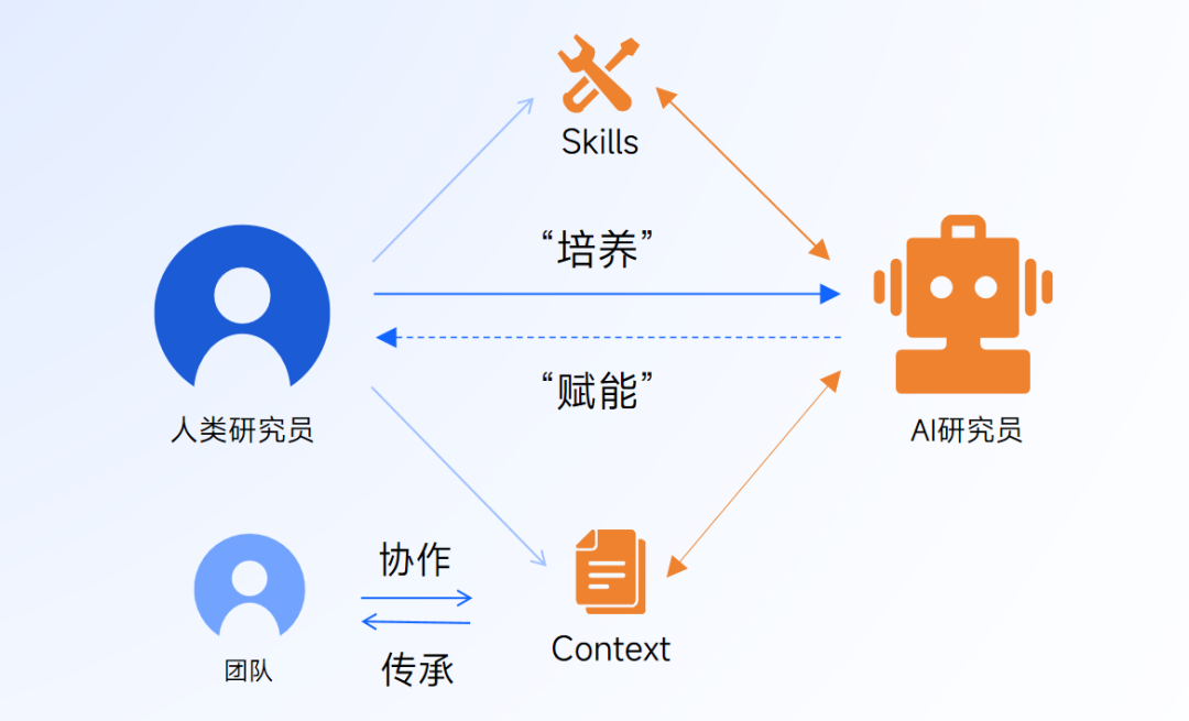 一个人类研究员可以“养”多个AI研究员,如果愿意,每家公司都能配一个专用Agent盯指标、盯变量;每类任务也能写一套对应的Skills。